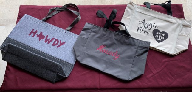 Boutique Glam Items Kitchen Grad Gifts Football! Christmas Glam! Dorm Decor HEADBANDS $10 solid maroon or marled Headbands Headband no shipping $10.71 USDHeadband with shipping $11.71 USD Maroon or marled Aggie Tote Bag Tote no shipping $15.83 USDTote with shipping $20.83 USD Specify tote design TOTES Were $20. SALE NOW $15 19.5″ across, 12″ tall & 6″ across Choice 1: 1st picture Vinyl – Howdy Felt Gray Maroon Choice 2: (middle pic) Dark Gray Canvas w/Embroidery Howdy, Pockets on end & Zipper Canvas Choice 3: Aggie Mom Canvas Beige Black Glitter with pockets and zipper