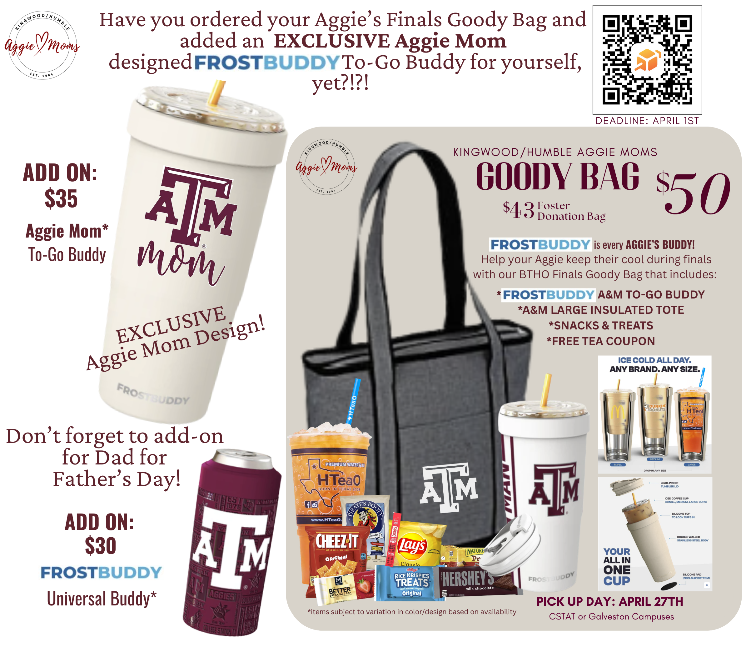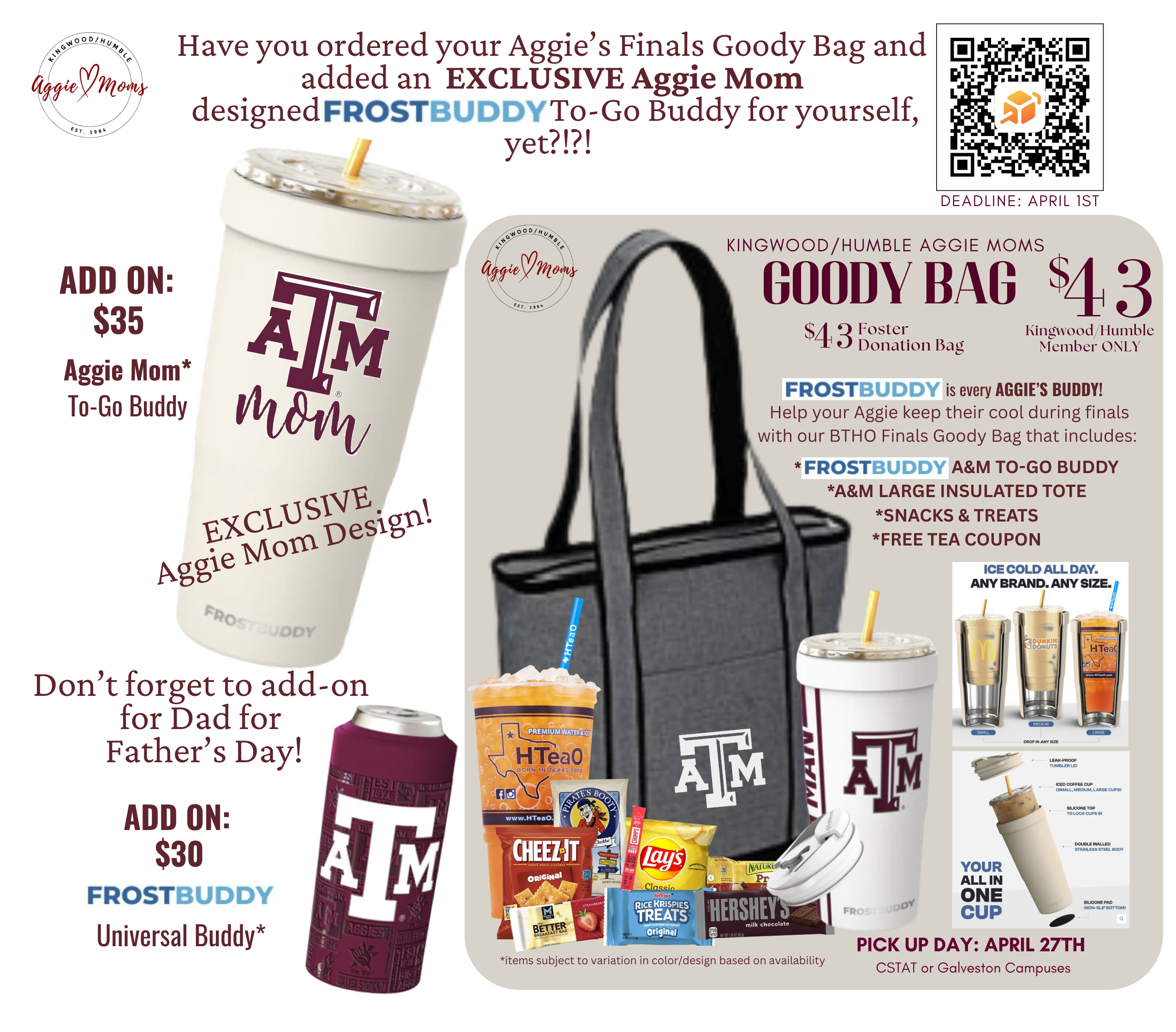 - All add-ons will be added to your Aggie’s Goody Bag at pick up